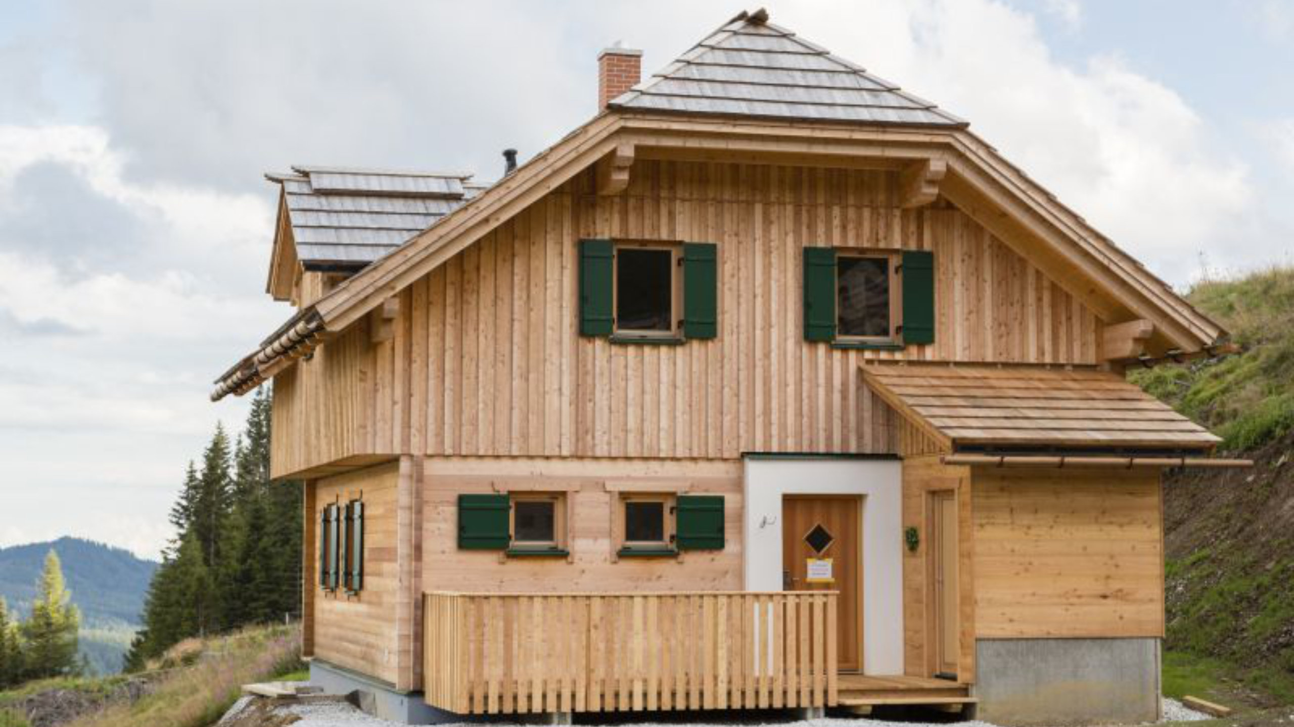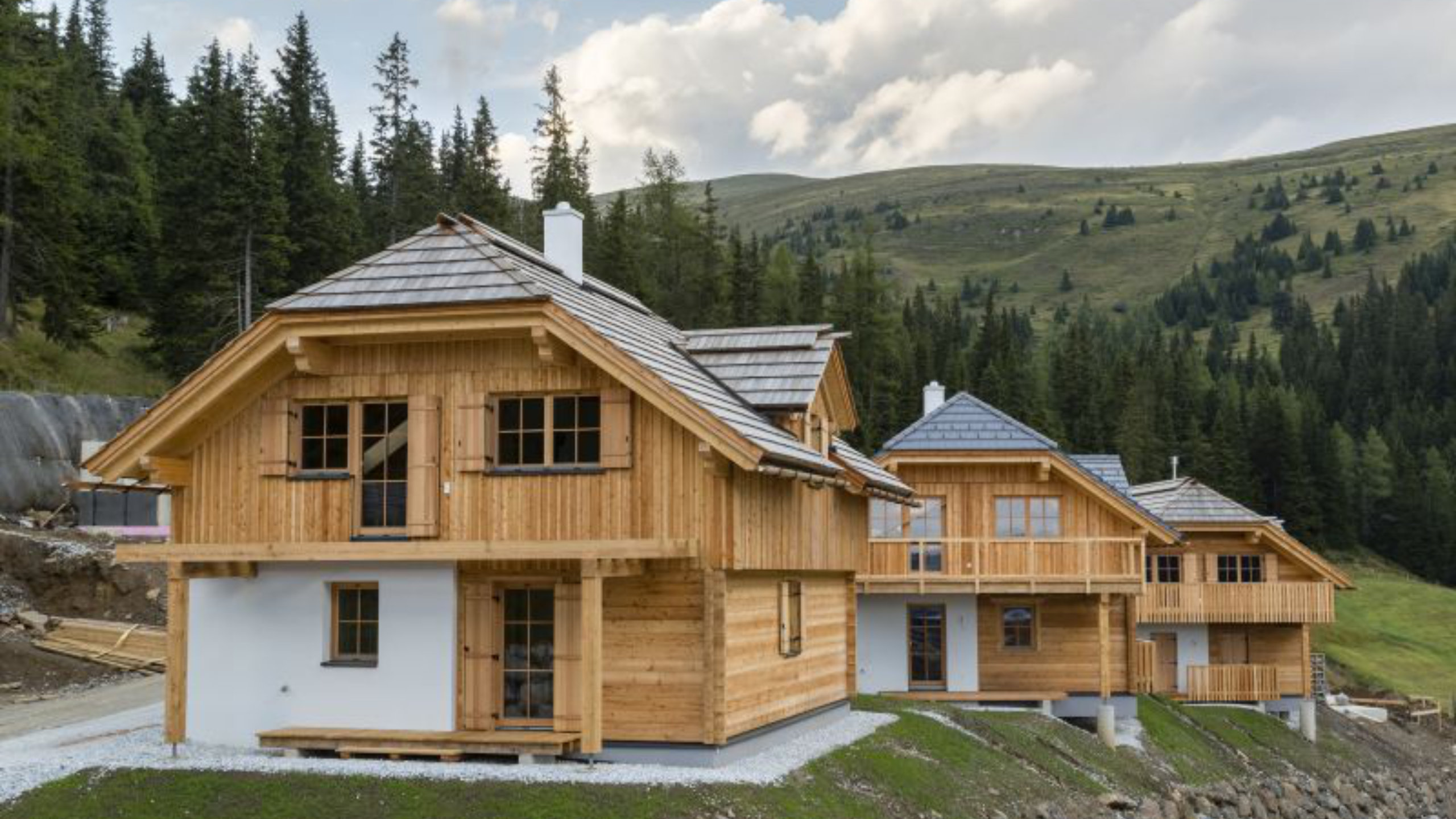 Passend zur wunderschönen Landschaft orientiert sich die Bebauung eng am Stil traditioneller österreichischer Holzhäuser.